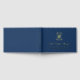 Blue and gold boy memorial service guest book with a teddy bear, your son's name in a gold foil script, and his date of birth and date of passing. Honor your beloved baby boy by asking the people attending his funeral to write down their memories of him or some comforting words or quotes. Blue and gold teddy bear funeral service guestbook honoring a baby boy or a toddler boy.