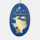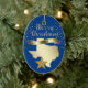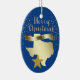 Give them something pretty from the great state of Texas! On the front of this ornament is a shiny gold silhouette image of the state, with a darker gold star imposed over it. Above the state and star image is the glittery message MERRY CHRISTMAS in script, and a banner with the text in blue TEXAS. Around it all are gold snowflakes. The images and text are placed on a deep blue background. The back of the ornament has text fields in light gold for you to customize, and a second gold star image. You may change the background color, if you'd like, by choosing CUSTOMIZE.