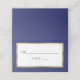 Simple, elegant and modern blue and white with gold tone (printed) border place card design.