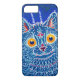 iPhone Case featuring Louis Wain’s animal painting A Cat in Gothic Style (1860-1939). A psychedelic blue cat amicably looks with yellow eyes at the viewer. A wonderful gift for cat lovers and English art.