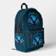 Blue gothic heart surrounded by magical flowers printed backpack