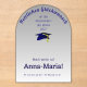 Celebrate academic success with modern elegance! This unique arch-shaped acrylic graduation card features a stylish blue graduation cap with a sleek silver gradient — a contemporary twist on a classic symbol of achievement. Designed in German, this keepsake can be customized with your name, graduation year, or a personal message. Make it truly yours by adding a photo or extra text, and commemorate your big day with a one-of-a-kind memento that reflects your journey and pride.