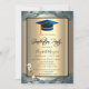 Blue Grad Cap,Wine,Glass Champagne Invitation