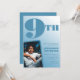 Having your Blue Gradient 9th Birthday Invitations Photo match the theme of your party is a great detail that your guests will appreciate. The thoughtfulness of a consistent party theme is often appreciated and can show your guests that you can host a cohesive event.