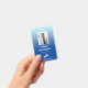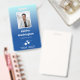 Vertical office employee badge with a simple design against a gradient from pale blue to sky blue. Add a photo of the employee along with name and profession. Personalize further with your business logo.