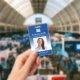 Blue gradient logo photo employee name title id badge