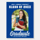 This modern blue and white custom senior photo graduate foam board sign features your high school or college name for the class of 2025. Customize with your name under the chic, bold handwritten script and trendy arch for great personalized graduation party decor.