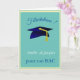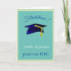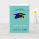 Blue graduation cap in teal background and yellow frame - stylish modern congratulations card in French for high-school graduations - easy to customize this card now with a name .You can add more text /photo etc .