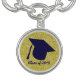 Beautiful Keepsake Silver Round Charm Bracelet Featuring Blue Graduation Cap Gold Faux Glitter Design - Makes a Great Graduation Gift!