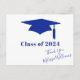 NewParkLane - Graduation Thank You Postcard, with quote 'Class of 20xx', and a blue graduation cap. With a text template for your own personal message.