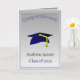 Celebrate your graduation with a stylish card featuring a blue graduation cap on a silver gradient background. This design offers easy personalization options, allowing you to add your name, graduation year, and even include additional text or photos inside to make it uniquely yours.