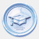 "This antique Blue graduation sticker features a classic embossed effect with a vintage, aged metal texture. The elegant design includes a graduation cap icon, customizable name, and laurel embellishments, making it perfect for celebrating the Class of 20XX with sophistication and style."