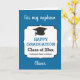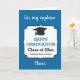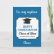 This is a personalized nephew graduation card designed in a blue. You can easily personalize with the class year, name and the student's school. Inside, this graduation nephew card, it reads "Congratulations, you did it! All of your hard work and determination paid off. You should be proud of