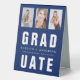 Blue Graduation Photo Collage Congratulations Table Tent Sign.