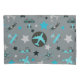 This fun and colorful kids pillow case has sky blue, black, and gray airplanes flying all over it! There are two styles of planes in different patterns and colors. Among the planes are matching blue, black, and gray stars. At the center is a blue airplane framed in a black circle. Everything is placed on a medium gray background. Any boy who loves planes and flying will love this duvet cover!