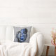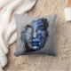 Modern abstract Bad Girl Face Throw Pillow . Blue witch. Ice Queen. Black, white, blue, gray colors. Girly design. Modern trendy fashion accessorie. Original art design by Imre Toth.