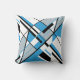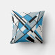 Blue Gray Black White Diagonal Angular Art Design Throw Pillow
