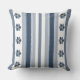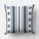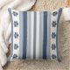 Blue Gray Bold Stripes Floral Throw Pillow