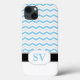 Personalized modern, fresh, and trendy Case-Mate Barely There iPad 2/3/4 Case designed with an alternating blue and gray chevron zigzag pattern, and custom printed with your monogram / initials.