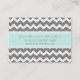Business cards in fun and vintage chevron zigzags pattern in modern light pastel turquoise blue, white and grey. Customizable with your contact details, stylish and contemporary. Contact us for a custom color.