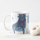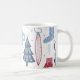 Gray Christmas Decoration Illustration Pattern Mug. Design features traditional Christmas hand drawn decorations set of ornaments, gloves, mitten, trees, stockings.