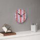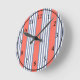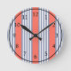 Blue-gray five stripe pattern with living coral round clock