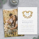 Plain white envelopes are included with paper invitations and will come to fit the invitation size you select. If you don’t need the envelopes, you may choose to not receive them by selecting the dropdown below "Envelopes" and choosing "None." If you’d like to have a design on your envelopes, you can browse all of these available envelopes to find the design that complements your Blue Gray Gold Heart Monogram Wedding Photo Invitation.