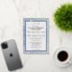 Design features a lovely blue and gray toned "marbling" effect as background to the shape displaying your text. First initials of bride and groom are elegantly displayed at top center. The appearance of delicate ribbons overlay the design. Reverse side features the same marbling effect with the image of both ribbon and rice. Text is that of the traditional Catholic wedding and is fully customizable. Design is part of the "Blue and Gray Marble" wedding suite.