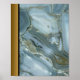 Blue Gray Marble Stone / Black Gold Border Art Poster