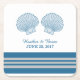 Elegant and classic Nautical Sea Shells Wedding Paper Coasters with a pair of simple seashells and an array of stripes in dark navy blue and gray. These nautical beach themed coasters can be easily customized with your wedding details. For more customization options, click on the Customize It button.