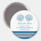 Elegant and classic Nautical Sea Shells Save the Date Magnet with a pair of simple seashells and an array of stripes in dark navy blue and gray. This nautical beach themed save the date can be easily customized with your wedding details. For more customization options, click on the Customize It button.