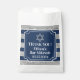 These navy blue, grey, and white striped Bar Mitzvah thank you favor bags would be a great way to send your guests home with a sweet treat from your Bar Mitzvah. Fill the bag with a large custom cookie or pretzel your guests are sure to remember. These square shaped Bar Mitzvah favor bags have a navy blue and simulated textured gray striped pattern behind a navy blue and white trimmed ticket-shaped text area that is personalized with the name and date of the Bar Mitzvah in white with a large "THANK YOU!" below a Jewish Star of David in gray. The star is removable if you want to use it for a different event or if you need more room for your text.