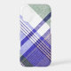 This case features a blue, gray, and white tartan plaid fabric design that is printed diagonally across the surface. It shows the weave, texture, and thread of the fabric. **Please note -- the image is printed on the case, which contains no actual fabric or cloth. It is intended to show the very thread and weave of fabric, which includes slight inconsistencies in coloring.*