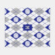 This sporty volleyball team colors fleece blanket features a blue, gray and white argyle plaid pattern with light gray "stitching" extending diagonally across the diamond shapes and white volleyballs overlying the blue diamond shapes - customize with athlete's monogram - by katz_d_zynes