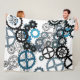 Blue Gray White Gears Steampunk Boys Decor Fleece Blanket