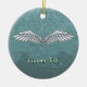 Lightweight, smooth, pure white ornament with nice sheen. Perfect size to be seen from across the room ... and to attract closer inspection! Price was great for ordering enough for the whole family! Clear, bold black design just as requested. Matches the order exactly. Just so nice!