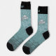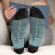 Wide open blue-gray wings illustration. Muddy blue background. Custom top stripe color. Custom text on each sock.