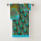 This towel set features the mystical colors of Caribbean abalone! A bright teal border accents the iridescent swirls. Create an exotic underwater feeling for your bath. We offer a matching shower curtain to complete your grotto.