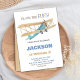 Plain white envelopes are included with paper invitations and will come to fit the invitation size you select. If you don’t need the envelopes, you may choose to not receive them by selecting the dropdown below "Envelopes" and choosing "None." If you’d like to have a design on your envelopes, you can browse all of these available envelopes to find the design that complements your Blue Green Airplane Birthday Invitations.