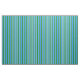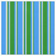 This design features a pattern of stripes having colors like blue, green, and beige.