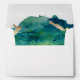 Stylish envelope featuring a rich watercolor texture and splatters of faux gold for a touch of lux