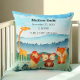 Blue Green Baby Birth Stats Pillow with Safari Animals, Watercolor Green Blue Forest,