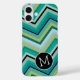 Blue Green Black Chevron Pattern Simple Monogram Case-Mate iPhone Case
