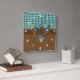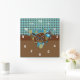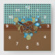 Blue, Green & Brown Plaid Baby Elephant Square Wall Clock