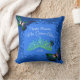 Personalize name and message on this blue decorative border, Quinceanera throw pillow. Blue and green butterflies Quinceanera keepsake. Versatile for royal blue or navy blue theme colors. Butterflies and tiara can easily be resized and repositioned on throw pillow.