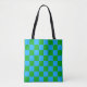 Blue Green Checkered Check Pattern Tote Bag
