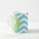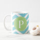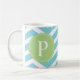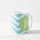 Customise this vibrant green, blue and white chevron pattern and monogram circle with the name of your choice.