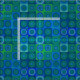 If you can't get enough dots, you will like this tiled pattern of dots within dots, dots within squares. The colors range from mid tone blue to deep green. The dots are soft edged, the squares crisp, providing visual contrast.