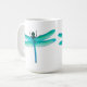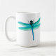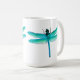 Original fine art design of a blue green dragonfly by artist Carolyn McFann of Two Purring Cats Studio printed on a quality and customizable coffee mug for pond insect fans.