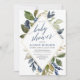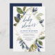 Blue green foliage boy baby shower geometric invitation